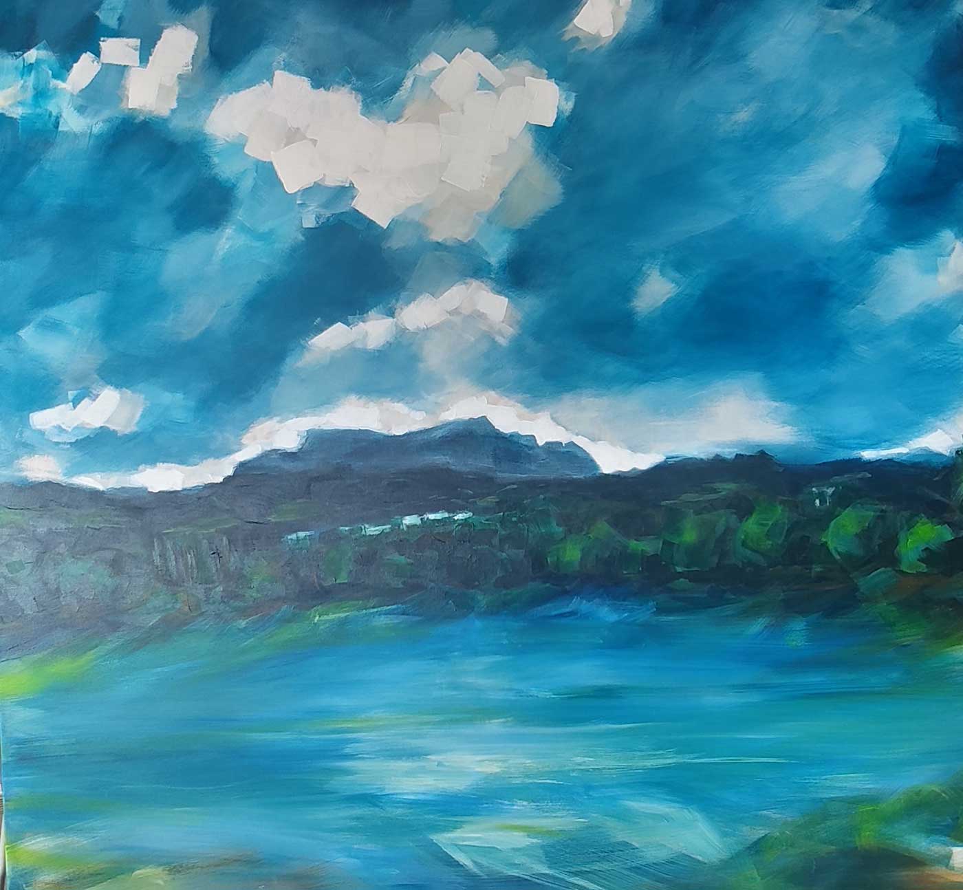 In her latest series of landscapes, she showcases the unique beauty of the Lake Constance region. Using acrylic paints, she vividly captures the region's diverse landscapes and distinctive lighting on canvas. Using acrylic paints, she creates vivid contrasts and detailed textures that capture nature's full splendour.
