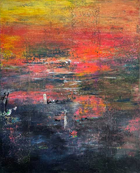 Imelda Steiger's work reflects her passion for colours, shapes and fabrics. Created through a meticulous process ranging from the empty canvas to structure and colour, her works ultimately reflect the emotions and inspirations of the artist's creative process.