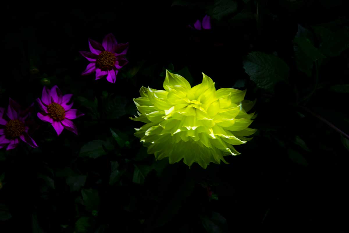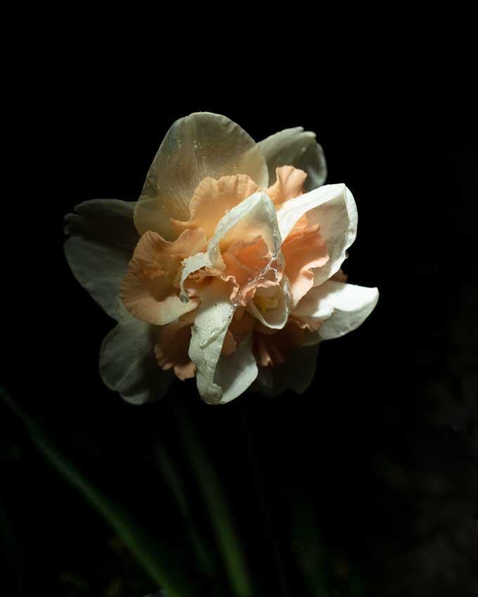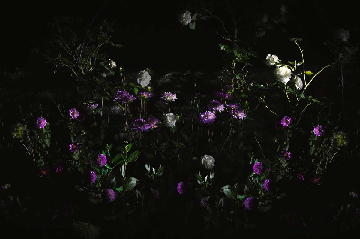 An intimate photographic journey that reveals blooming flowers swallowed by the darkness of a dreamlike garden in Ticino.