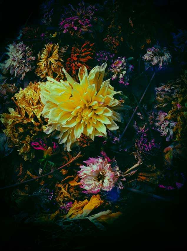 This project was created during the first Lockdown in March 2020, Yuri Catania carefully observed the world around him, surrounded by luminous and colourful flowers floating in a dreamlike and intimate - typical of the night hours - dimension. In his constant search for uniqueness and the desire to combine different means of expression, Catania intervenes in the photographs.