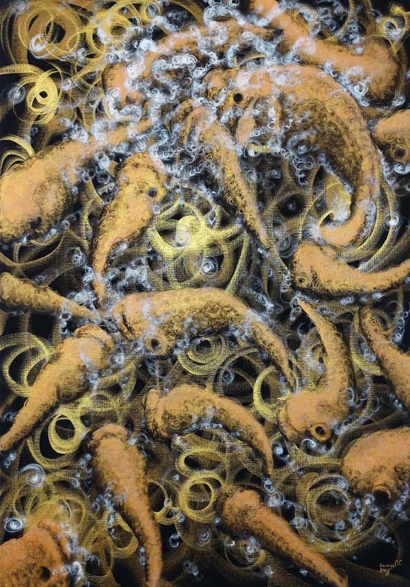 Donegel' Chong's artworks are biographical to varying degrees - they deal mainly with his preferences. Chong calls them "personal reflections of life". Donegel' Chong has developed his own unique style of painting, with brushstrokes he calls "Kurrrlys" or "emotional release brushstrokes".