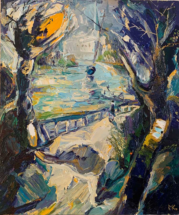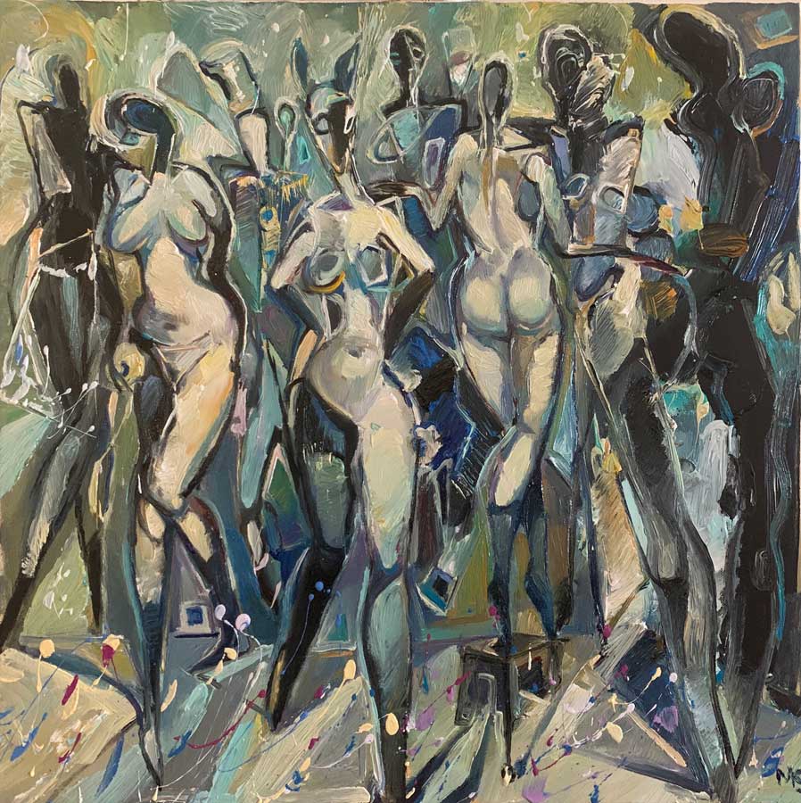 Mamuka began his work as a modern expressionist painter. He plays masterfully with perspectives and colour gradients. In his landscapes and still lifes, he uses both fine lines and broad brushstrokes to tell finely arranged stories that the viewer rediscovers with each glance. Currently, he mainly uses mixed media and various abstract styles such as paint splatter, abstract expressionism, and lyrical abstraction.