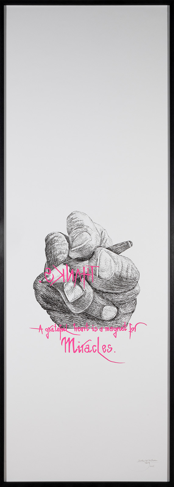 Die Kunst der Kalligrafie hat sie sich im Alter von zehn Jahren selbst beigebracht und sie ist bis heute ihre Leidenschaft geblieben. Sie möchte den Menschen wieder Zeit schenken und den Betrachtern zeigen, dass es sich doch lohnt, genauer hinzuschauen.