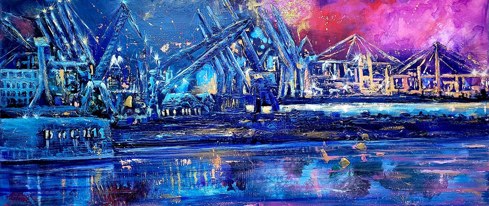 Michael Frahm feels deeply connected to the sea and the harbours of the world. Frahm expresses this in his art. Colourful and positive is his motto, which is reflected in the various harbour motifs.