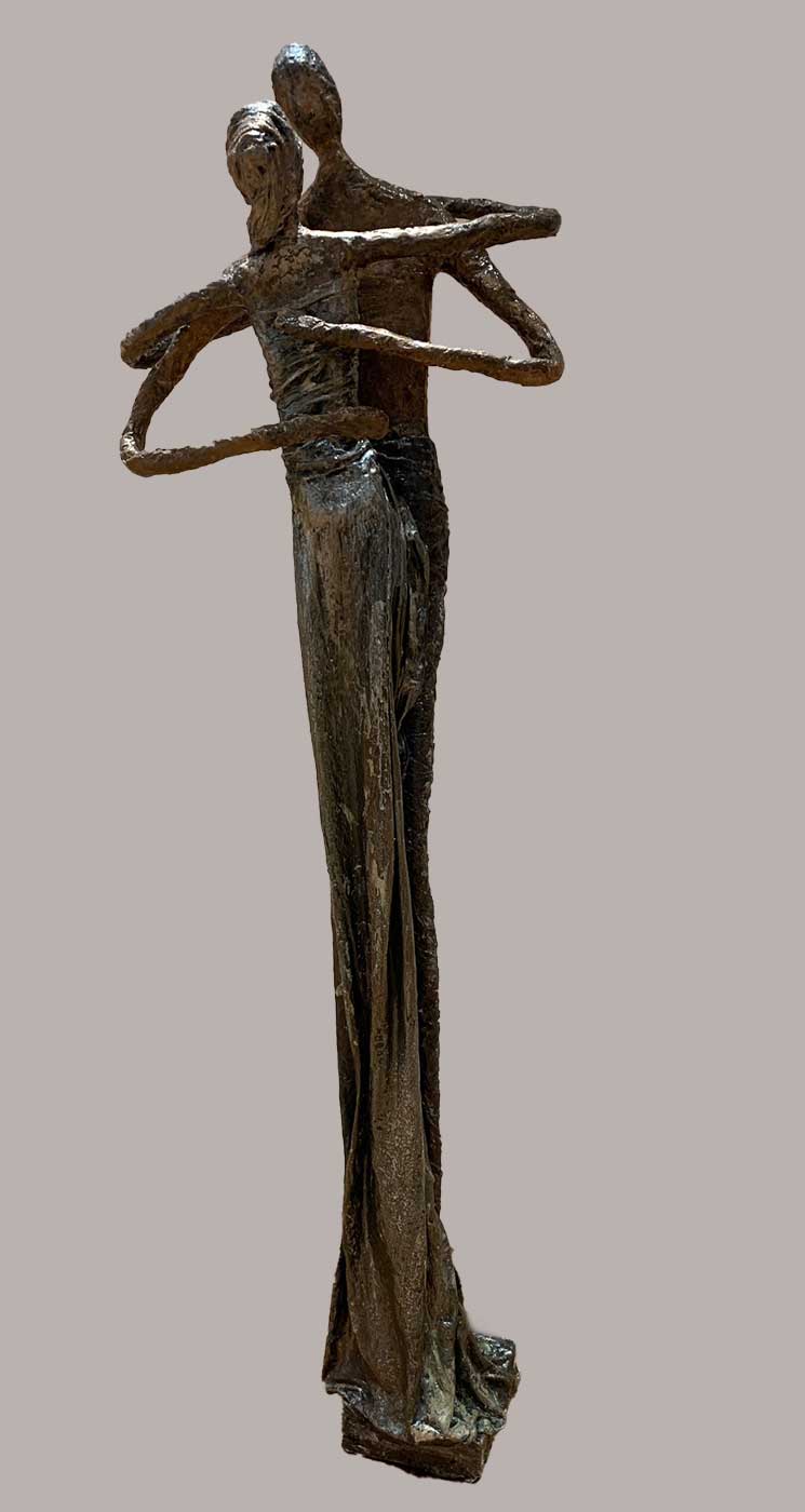 Karin Myriel Leopold grew up in the Zurich Oberland. Even as a child her life was full of colours, ideas and fantasies, figures and shapes. She loved doodling on paper, drawing with chalk in the street, and building figures outdoors with earth and water that washed away after a heavy rain. Later she learned to paint with many different materials and to create figures with textile stiffeners. Her abstract paintings are mostly made with structural pastes, acrylics, mixed media, ash and 24-carat gold leaf. She carefully forms her sculptures from textile stiffeners. In many layers she brings out the deep expression of her soul. Going through the many emotions, highs and lows of creating a work is part of the process. Leopold gives free rein to the colours and forms until they are touched and completed. For Karin Myriel Leopold, each piece is a new discovery of the unknown. The viewer has the opportunity to discover something profound and valuable.