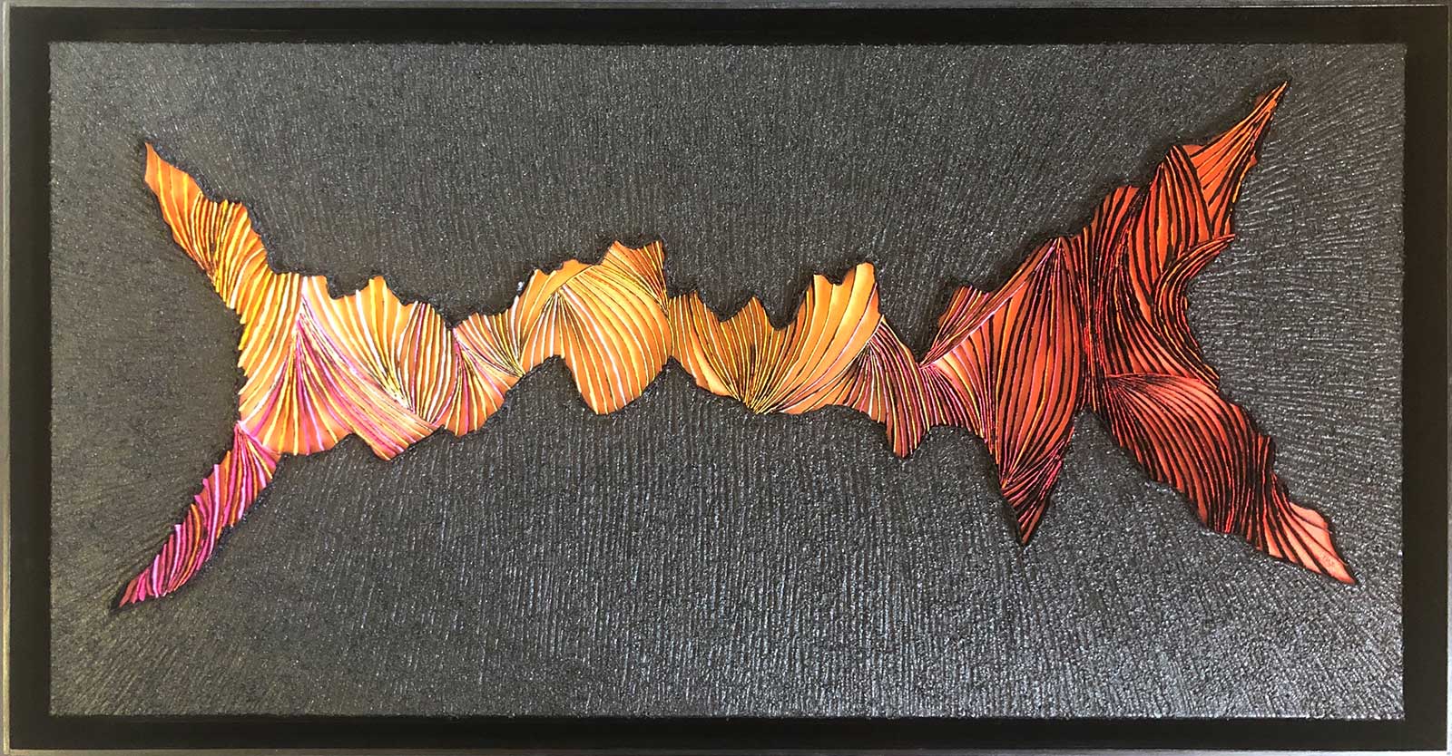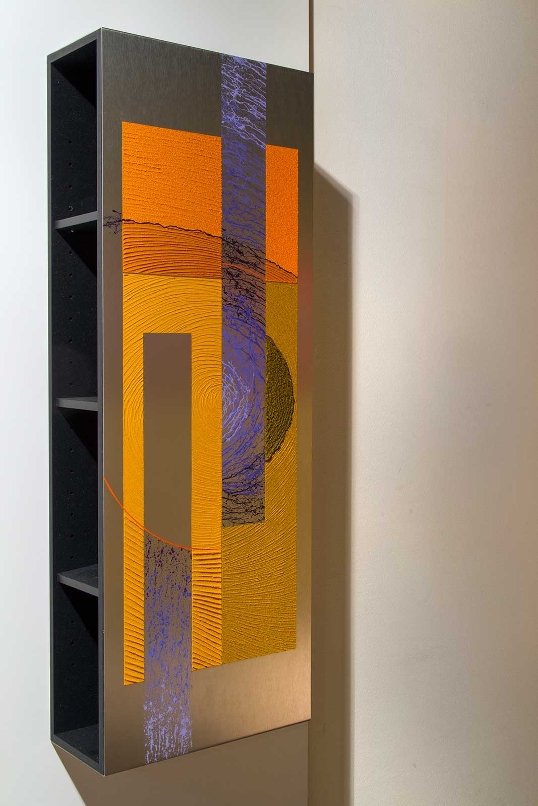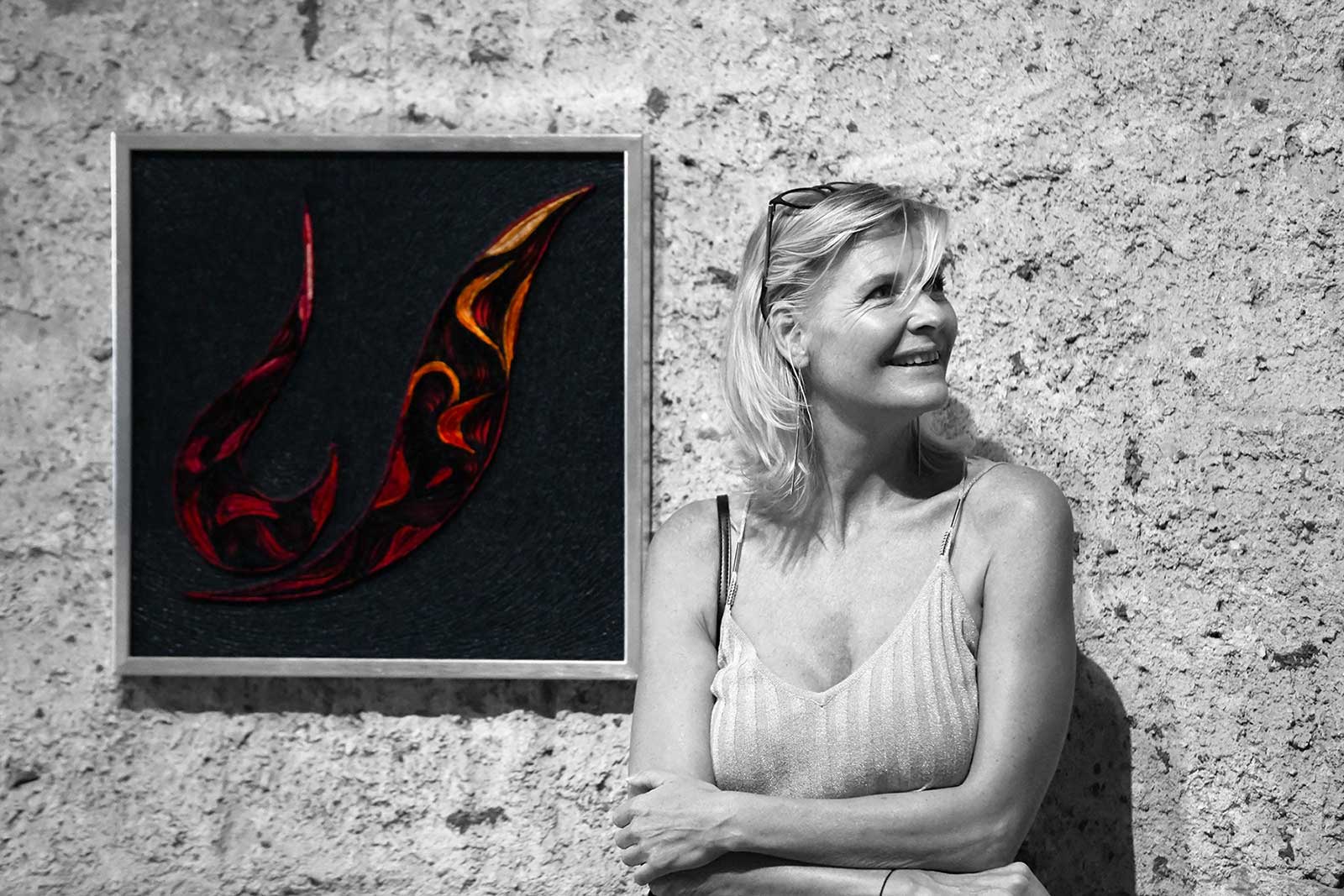 Nicole Bron Chappuis (NBCH) lives and works in Switzerland. For more than 20 years, NBCH has been exploring the dialogue between sand textures from all over the world and their colours in various forms. The artist mixes them with acrylic paints and transforms them into lace, bark or leaves that take on new meaning in their new form. Her unique technique combines natural sand, slight curves and fine splashes in a constant graphic and abstract search.