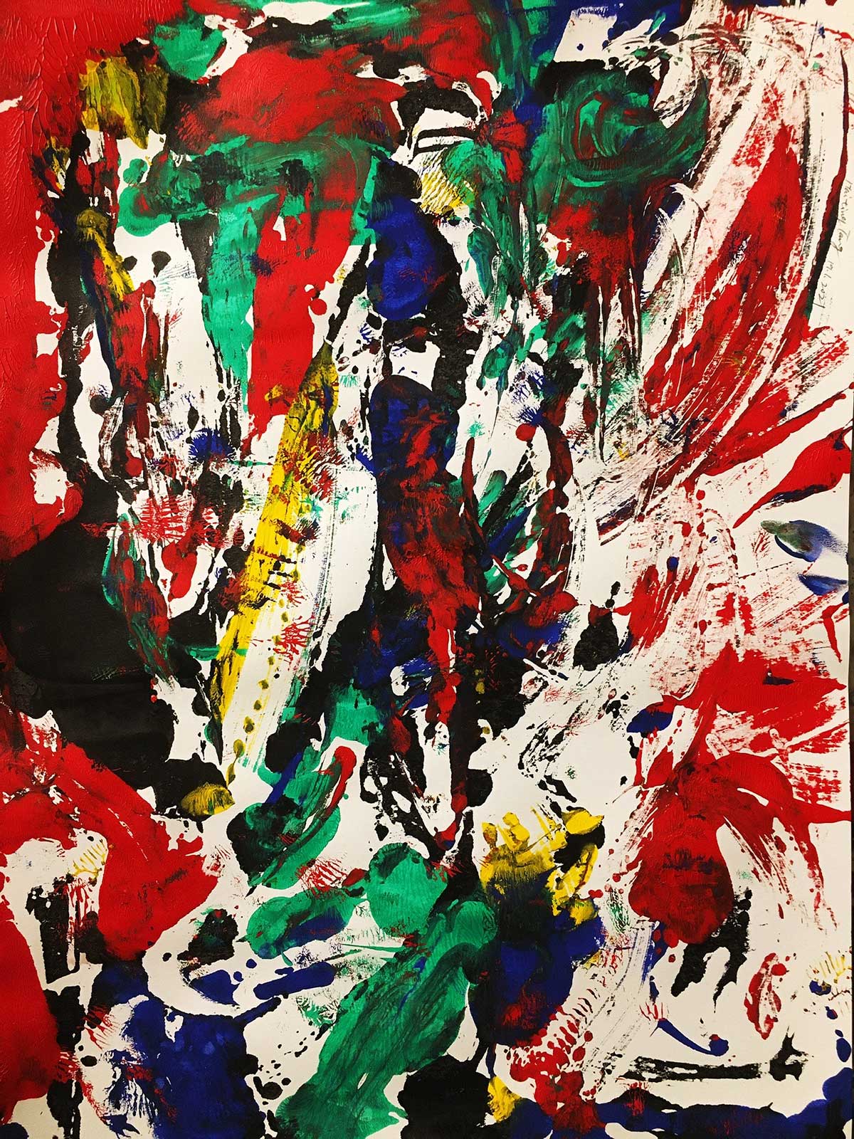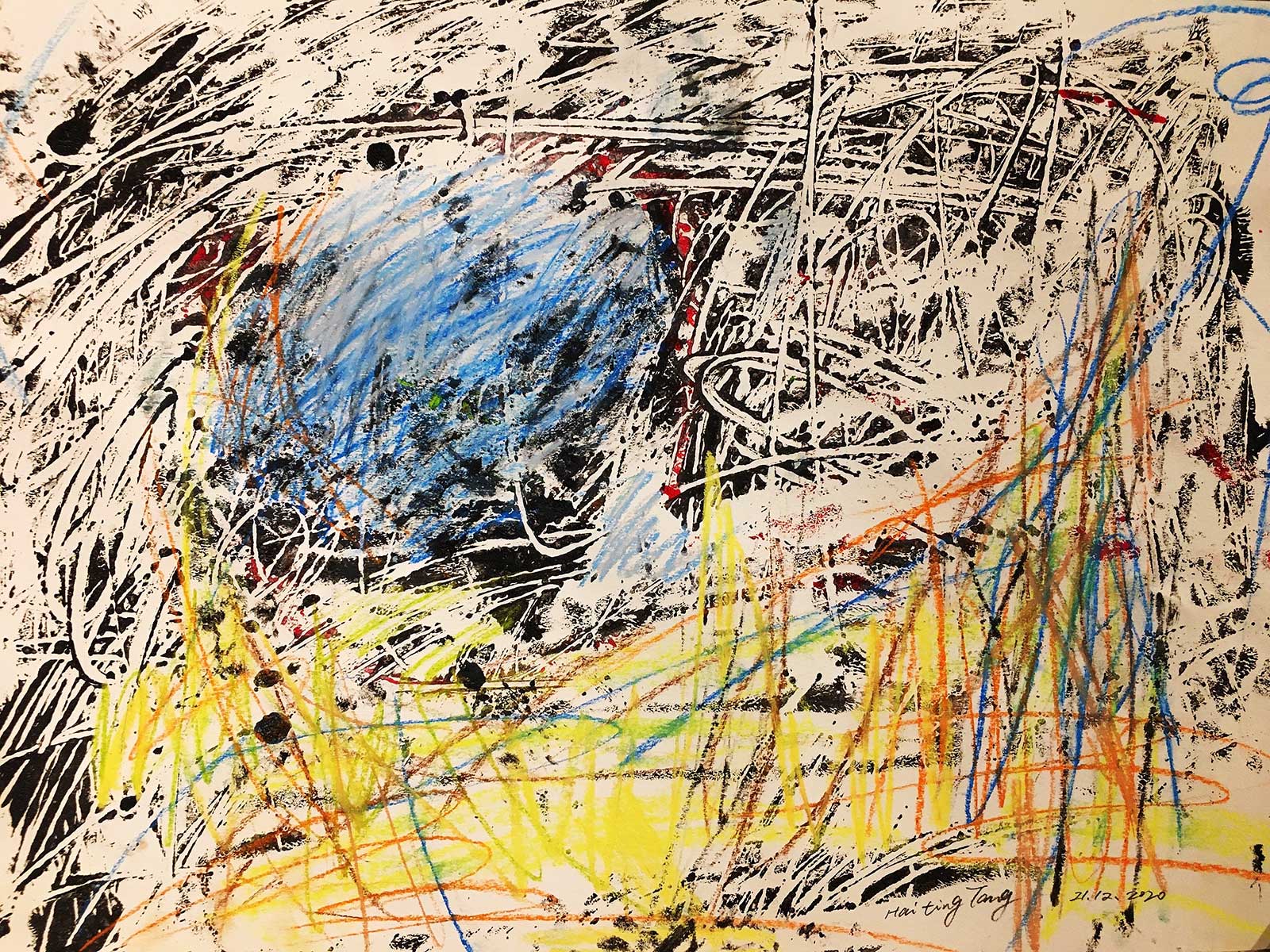 Haiting Tang's paintings are characterised by a vibrant palette, often containing expressive contrasts and harmonious transitions. Through the use of abstract shapes and lines, she creates a dynamic composition that draws the viewer into her work.