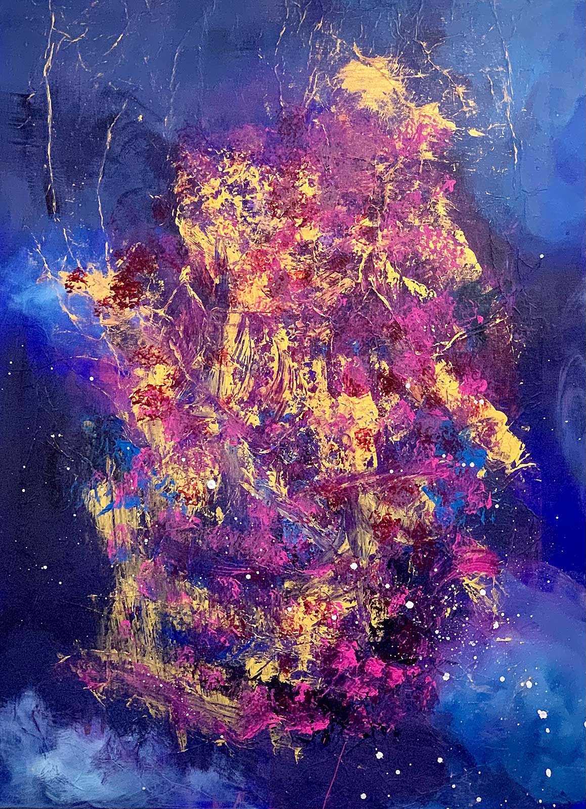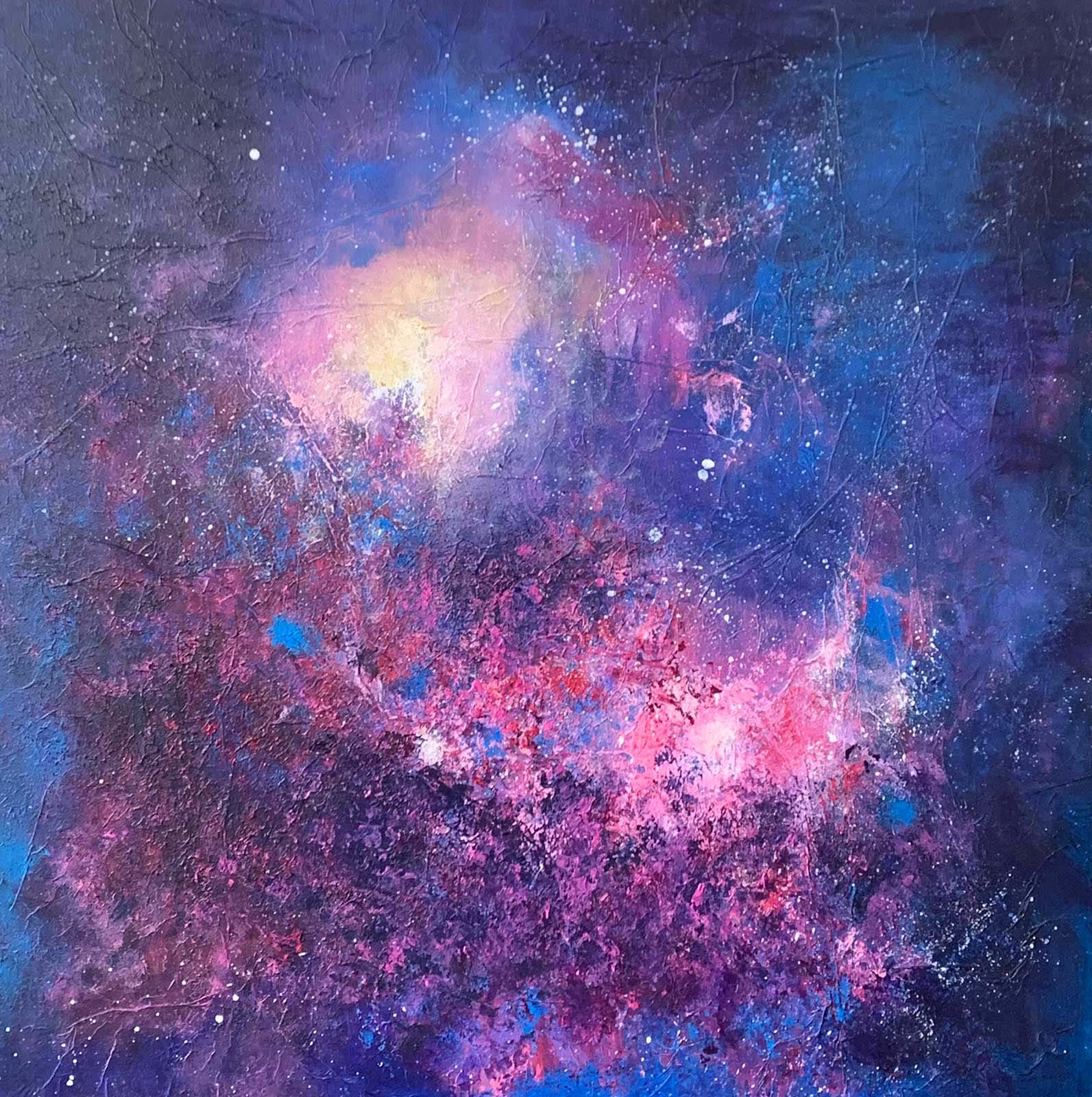 In her latest series, 'Galactic Emotions', the artist depicts a galaxy rich in colour and form, inviting us to be inspired by the beauty and complexity of human emotions and to connect them with the infinite vastness of the universe.