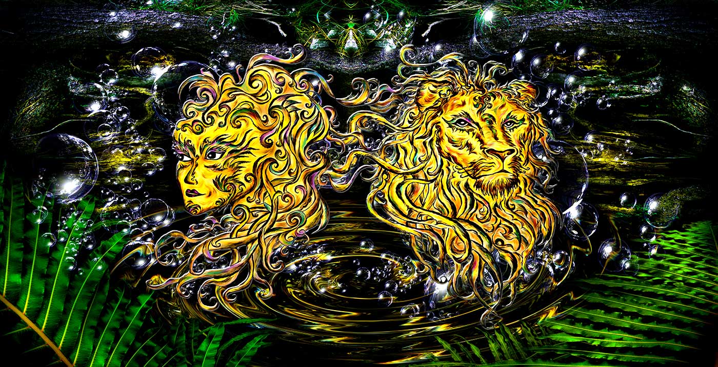 The artistic process commences with the creation of pencil drawings of living creatures on paper, which are then enhanced by digital colour manipulation and combined with her own photographic backgrounds. The meticulous process lends the works a mystical and imaginative dimension, which is brought to life through the use of high-quality fabrics and innovative LED lighting technology.