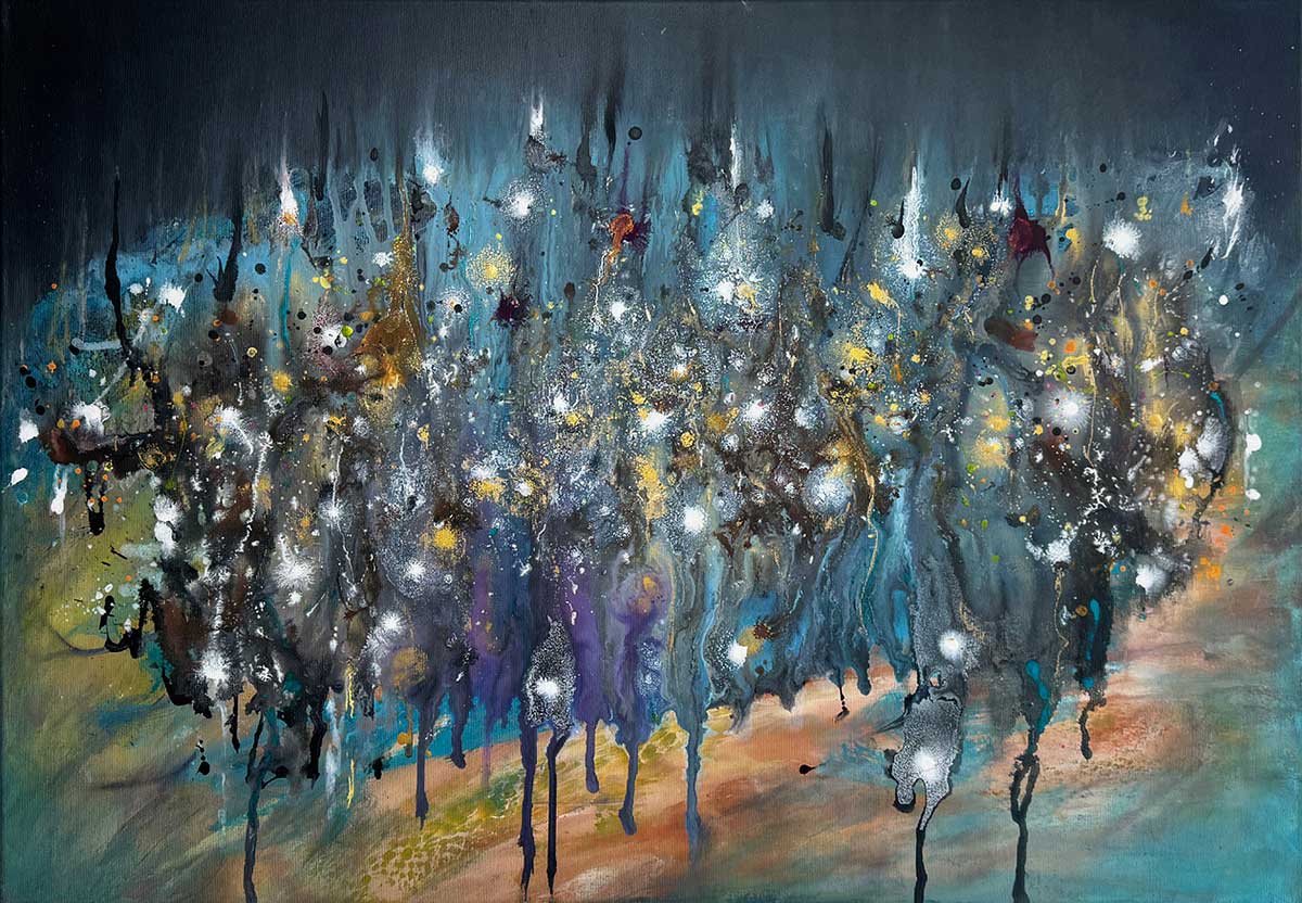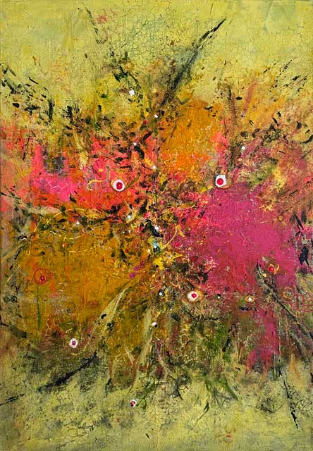 Imelda Steiger's work reflects her passion for colours, shapes and fabrics. Created through a meticulous process ranging from the empty canvas to structure and colour, her works ultimately reflect the emotions and inspirations of the artist's creative process.